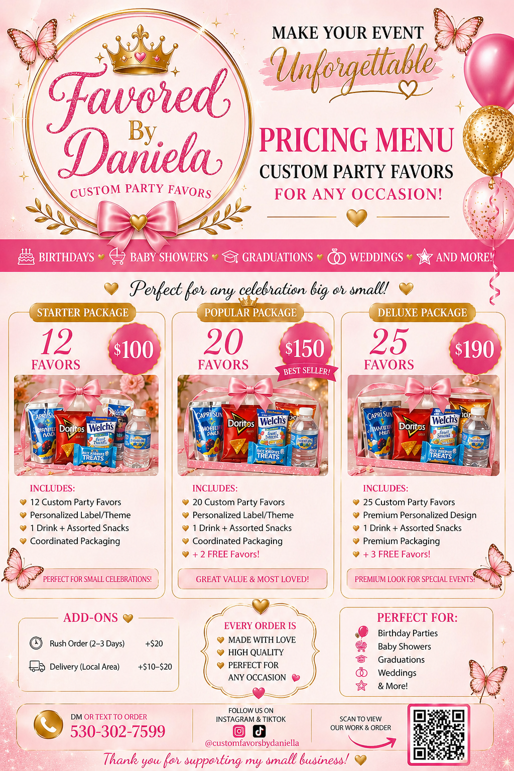 Discover the perfect party favors for your next event with Favored By Daniela. Explore our custom bundles and individual options, designed to bring your vision to life with style and ease.